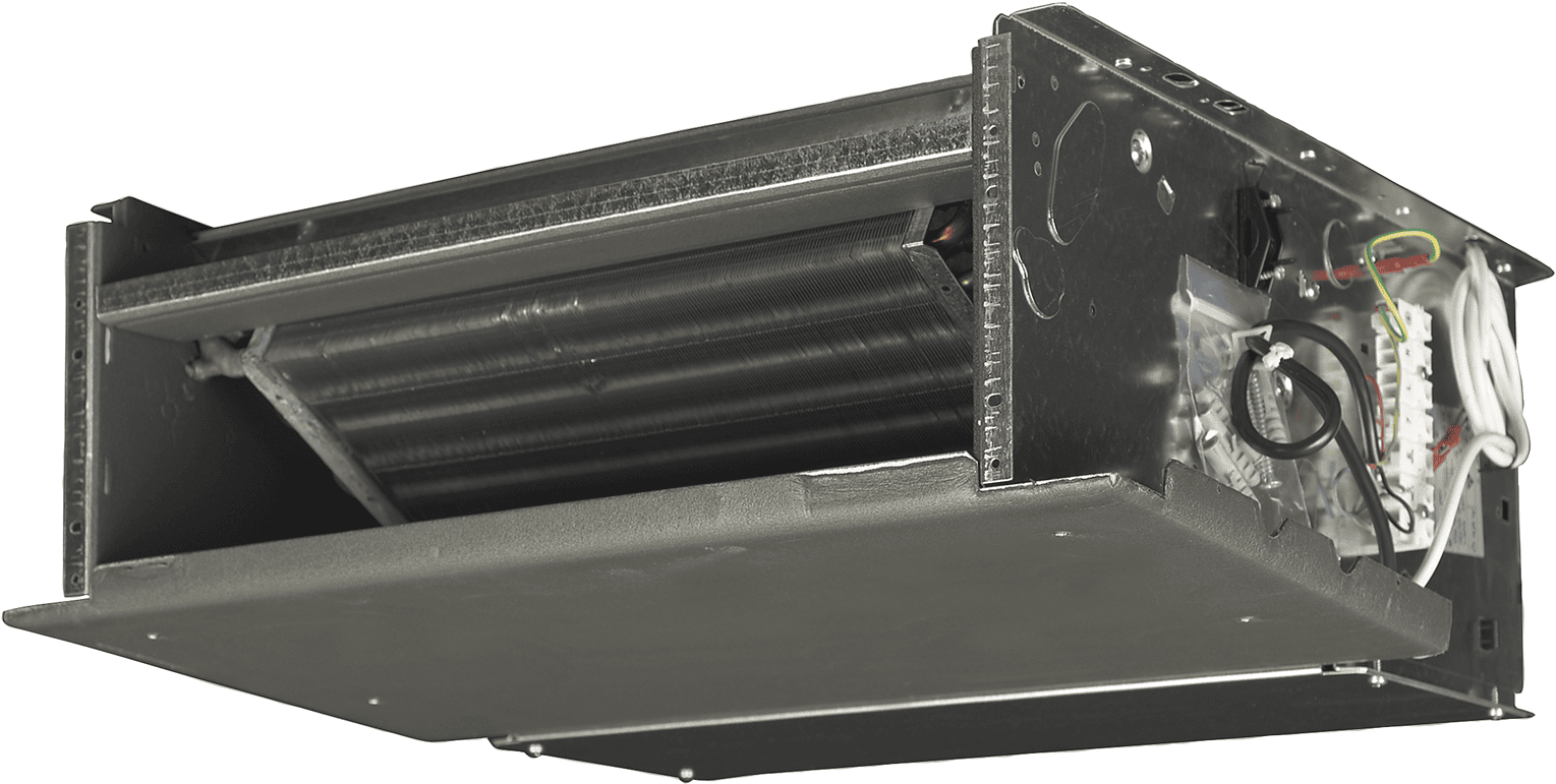 Kanalna jedinica s niskim ESP-om. AC motor ventilatora za vodoravnu ugradnju.