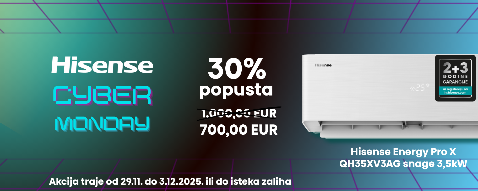 Hisense Energy Pro X – QH klima uređaj – savršeno optimiziran za hlađenje i osobito za grijanje po izrazito niskim temperaturama. Dostupno u bijeloj boji.
